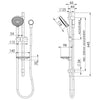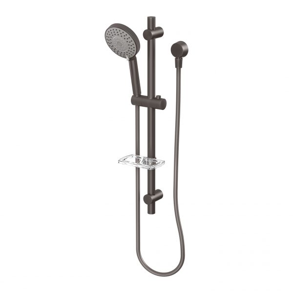 - Push button slider for adjustable shower height
